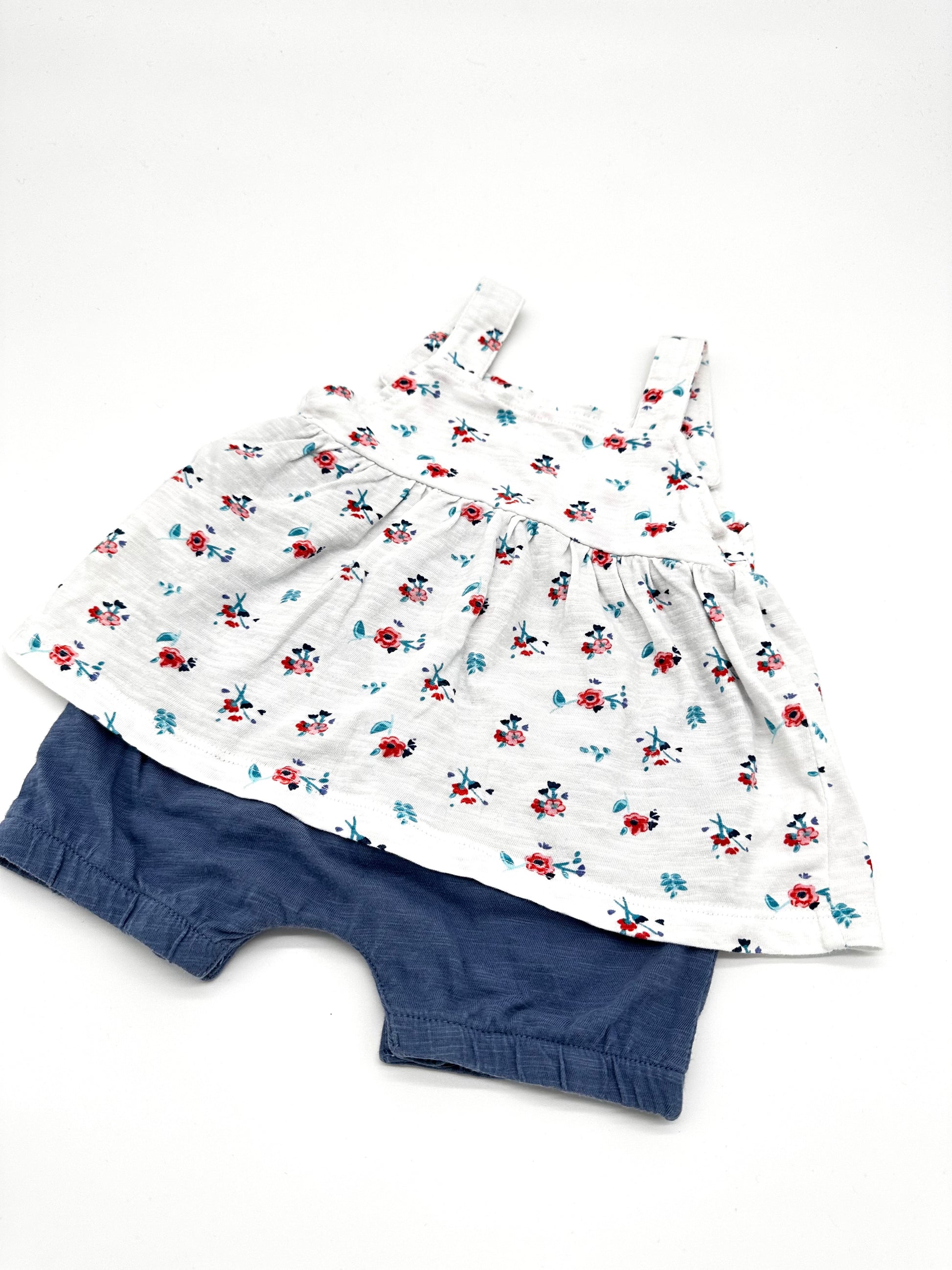 Dieses süße 2-teilige Set von Manguun vereint Komfort mit zauberhaftem Design. Das ärmellose Oberteil begeistert mit einem zarten Blumenprint in Rosa und Blau, während die angenähte Shorts in Jeansblau den Look perfekt abrundet. Durch die Druckknöpfe im Schritt lässt sich das Outfit nicht nur schnell anziehen, sondern auch besonders praktisch beim Wickeln handhaben.