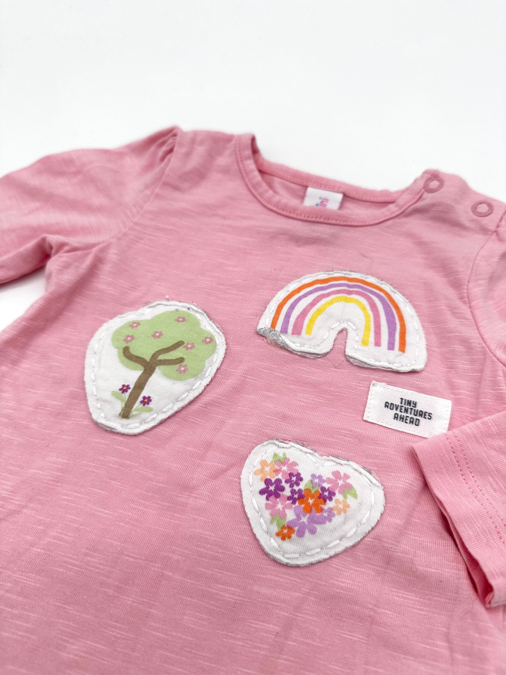 • Rosa Kleid mit niedlichen Applikationen (Regenbogen, Baum, Herz)