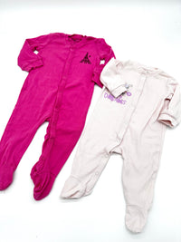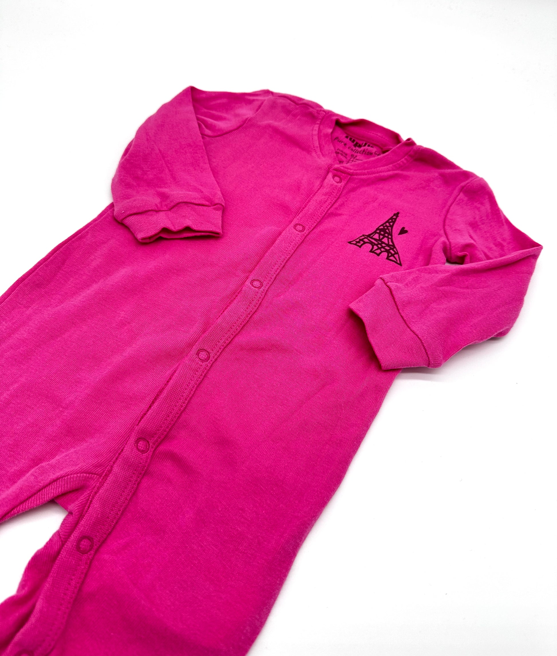 Der pinke Strampler begeistert mit einem schlichten Look, verziert durch ein kleines Eiffelturm-Motiv auf der Brust. Der rosafarbene Strampler hat ein niedliches Print-Design mit Schriftzug, das dezent verspielte Akzente setzt. Beide Modelle verfügen über eine durchgehende Druckknopfleiste, die das An- und Ausziehen sowie das Wickeln erleichtert.