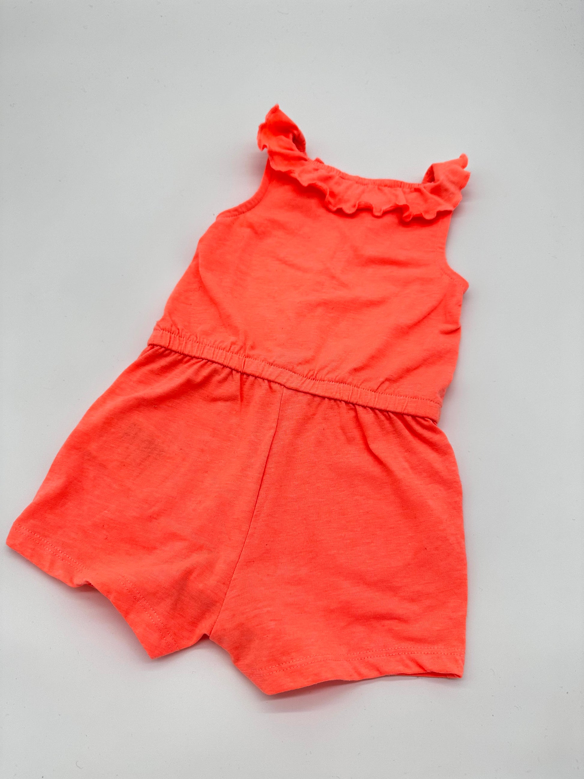 Dieser ärmellose Sommer-Overall von Dopodopo ist ein echter Hingucker für warme Tage! Die frische korallrote Farbe und der verspielte Rüschenkragen machen ihn zum perfekten Outfit für kleine Mädchen, die es luftig und bequem mögen.