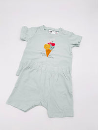 Dieses niedliche Sommer-Set von H&M besteht aus einem T-Shirt mit süßem Eis-Print und passender Shorts. Der Spruch „Chillin’ with my family“ macht das Set zu einem echten Hingucker für warme Sommertage.
