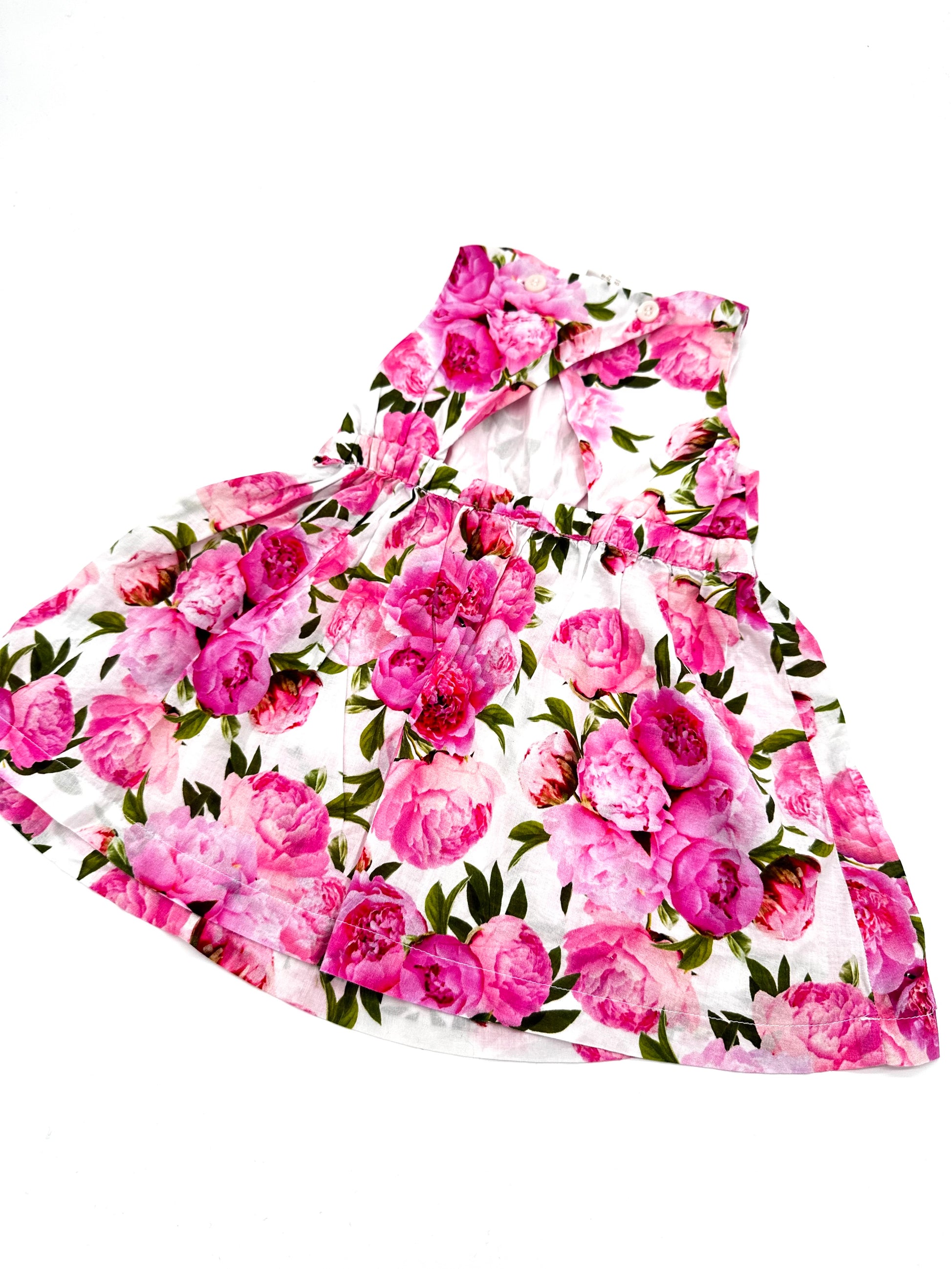 Ein Kleid wie ein Blumenmeer! Dieses traumhafte Sommerkleid von H&M in Größe 74 begeistert mit seinem auffälligen rosafarbenen Blüten-Print auf weißem Grund. Perfekt für festliche Anlässe, Geburtstage oder als süßes Outfit an warmen Sommertagen.