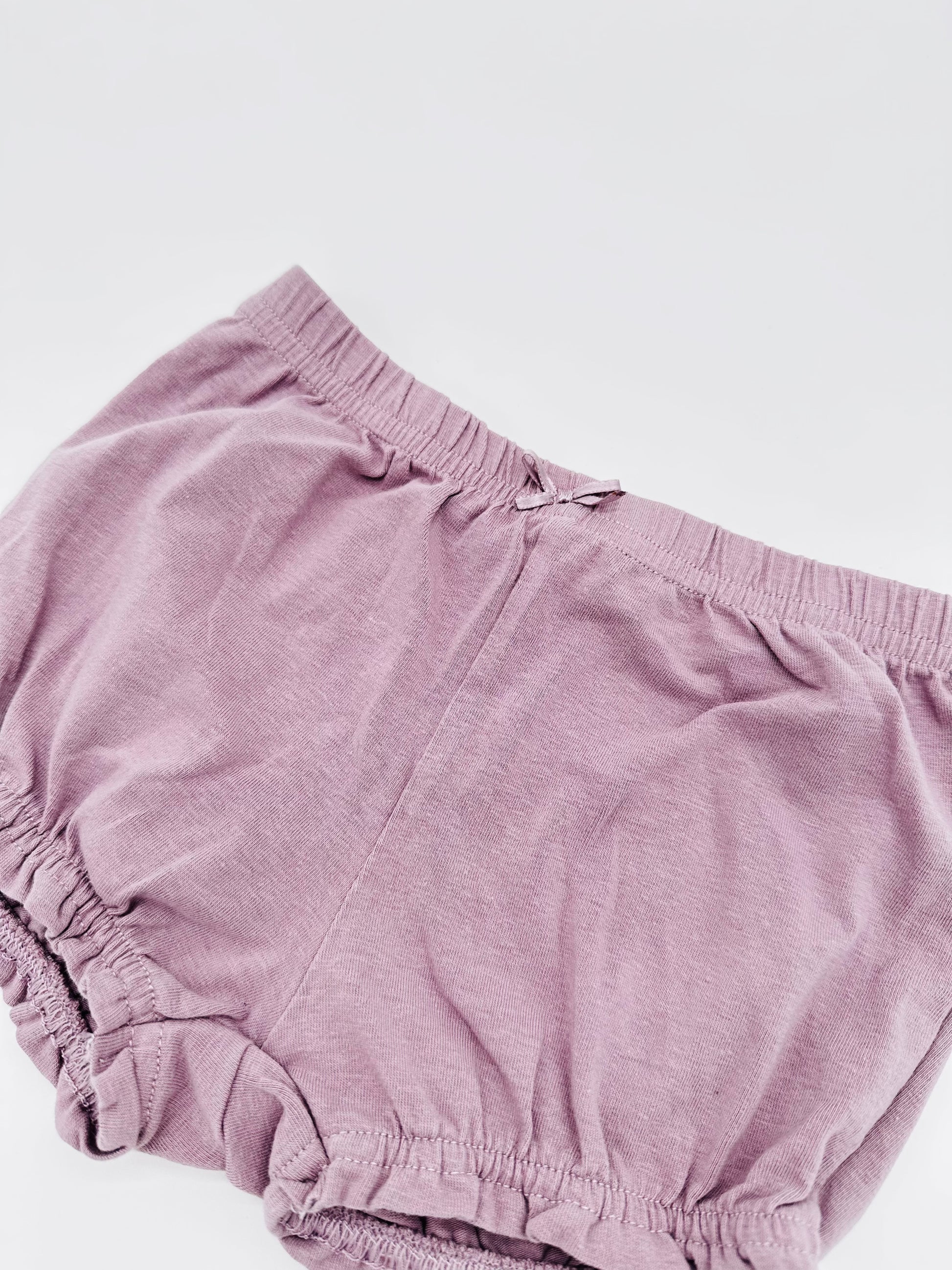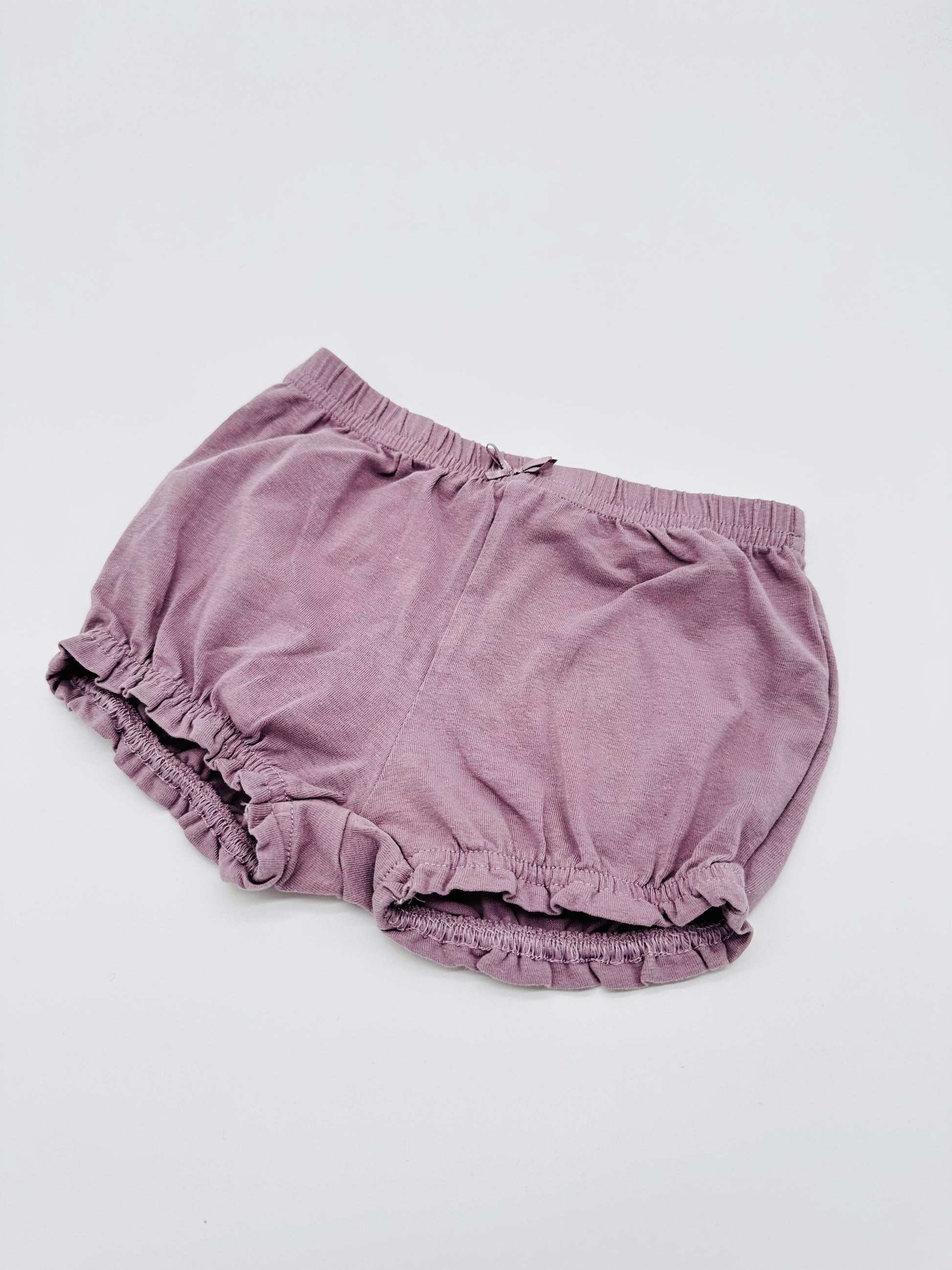 Diese niedliche H&M Babyshort in Größe 68 ist perfekt für warme Tage! Der zarte Fliederton, die weiche Baumwollmischung und die verspielten Rüschenabschlüsse an den Beinchen machen sie zu einem echten Sommerliebling. Durch den elastischen Bund sitzt sie bequem und lässt sich leicht an- und ausziehen – ideal für aktive Babys.